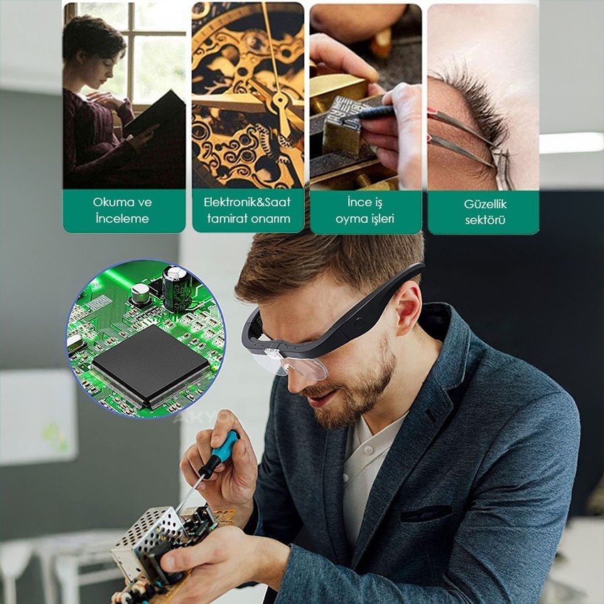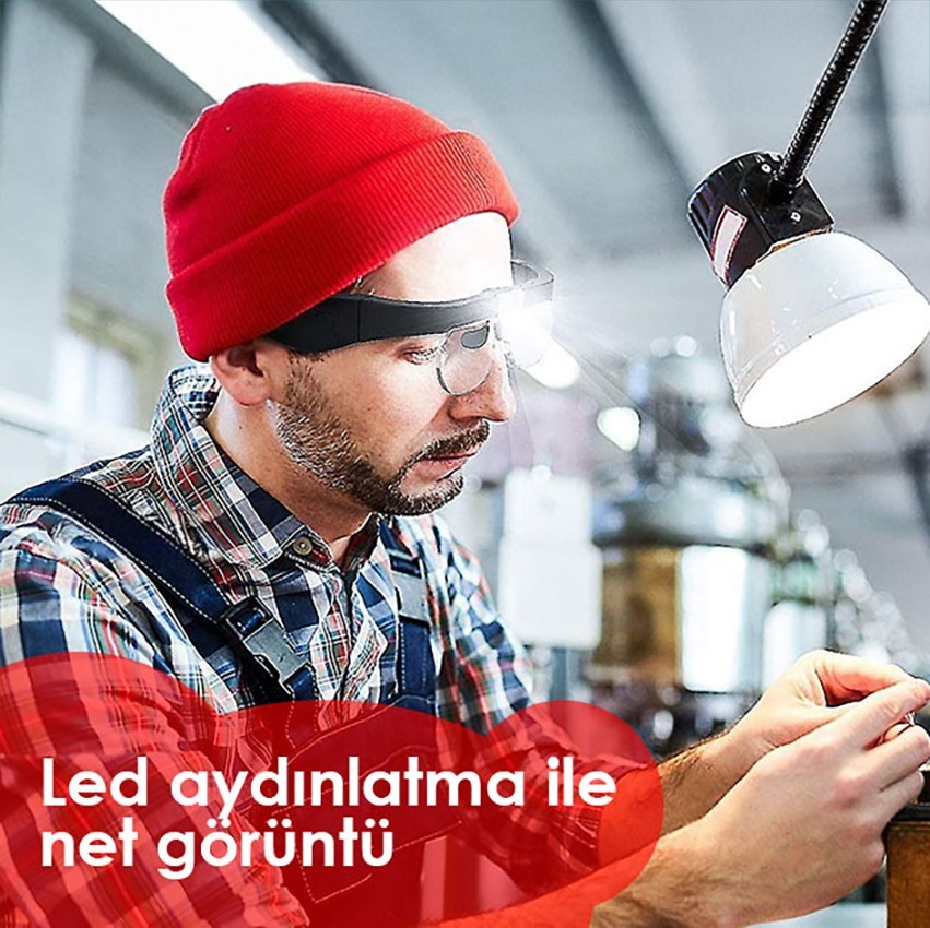 LED ışıklı kafa büyüteci; değiştirilebilir lensleri ve güçlü LED aydınlatması ile küçük parçaların detaylı incelenmesini sağlar. Kuyumculuk, elektronik tamiri, modelcilik ve hassas montaj işleri için idealdir.