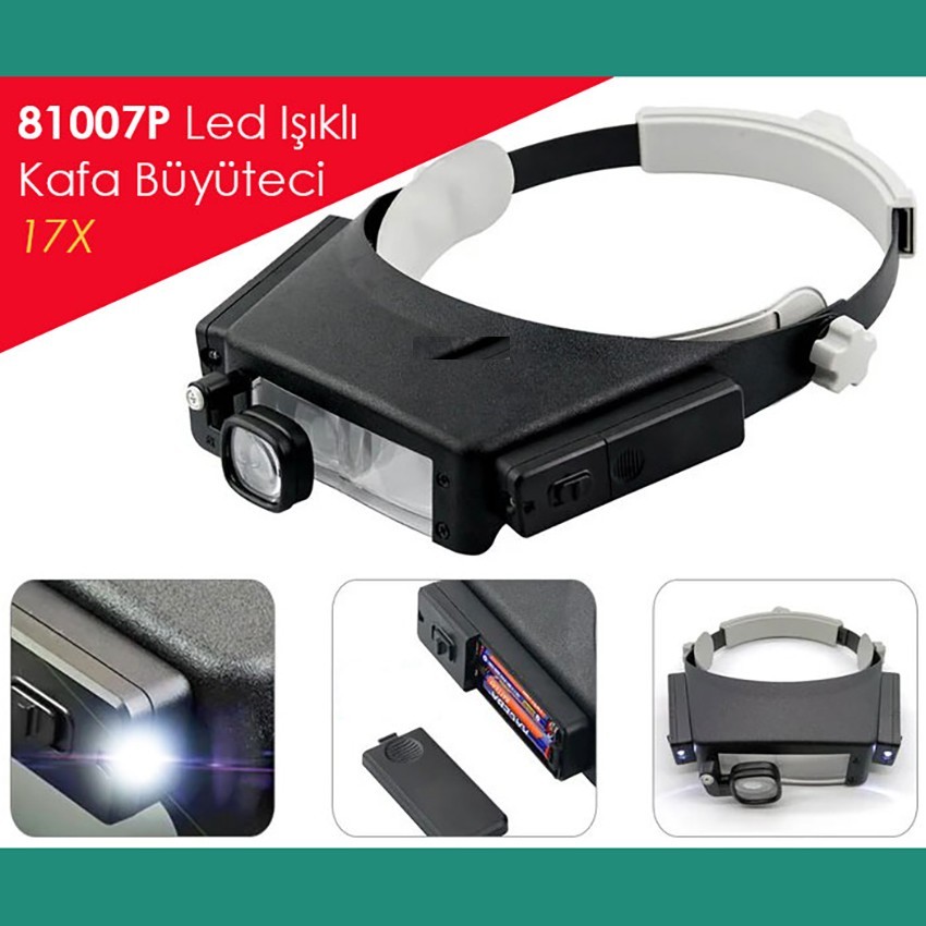 LED ışıklı kafa büyüteci; değiştirilebilir lensleri ve güçlü LED aydınlatması ile küçük parçaların detaylı incelenmesini sağlar. Kuyumculuk, elektronik tamiri, modelcilik ve hassas montaj işleri için idealdir.