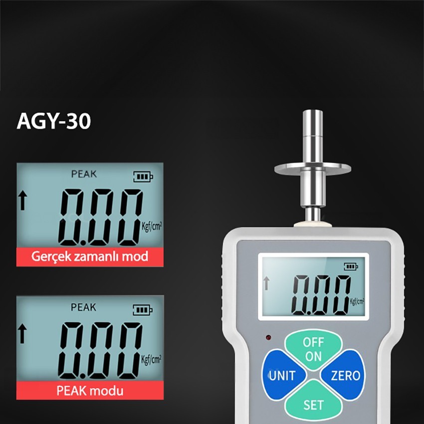 - AGY-30 meyve sertlik ölçer cihazı Kgf/cm2 birimi ile ölçüm yapmaktadır.