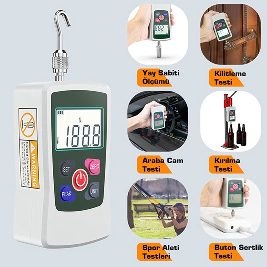 500 newton yani 50 kilogram kapasite ile itme ve çekme testi yapılabilir.