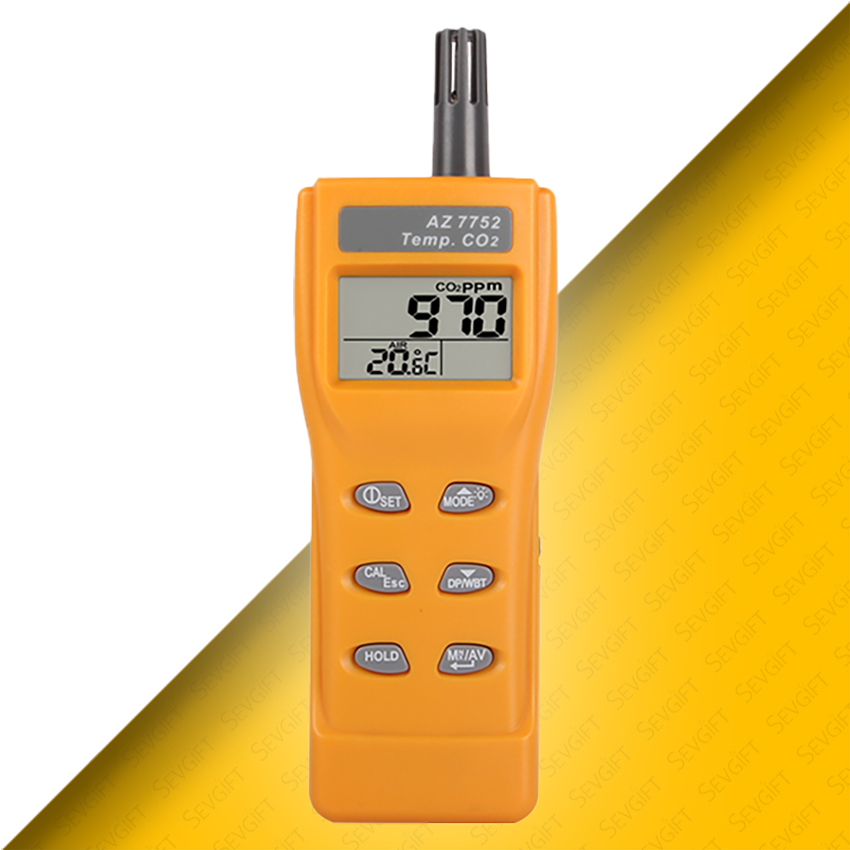 - AZ 7752 el tipi karbondioksit ölçüm cihazı, ortamda bulunan havanın karbondioksit değerini ve sıcaklık değerini anlık olarak takip edebileceğiniz bir ölçüm cihazıdır.