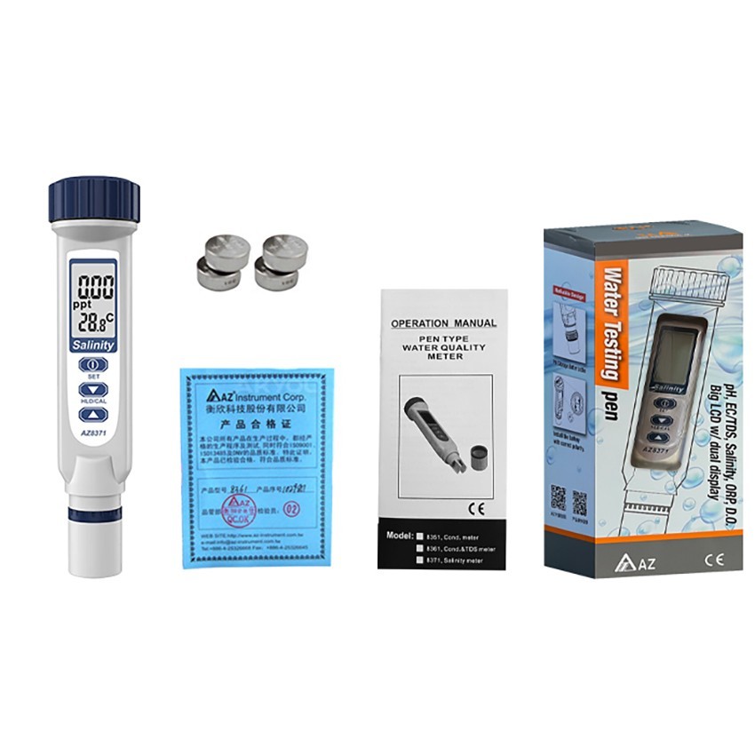 Belirli bir çözelti halindeki sıvının içerisinde bulunan tuz oranını ölçmemizi sağlayan cihazlar tuzluluk ölçüm cihazları olarak adlandırılmaktadır ve AZ 8371 dijital tuzluluk ölçüm cihazı da bu ölçüm cihazlarından bir tanesidir.