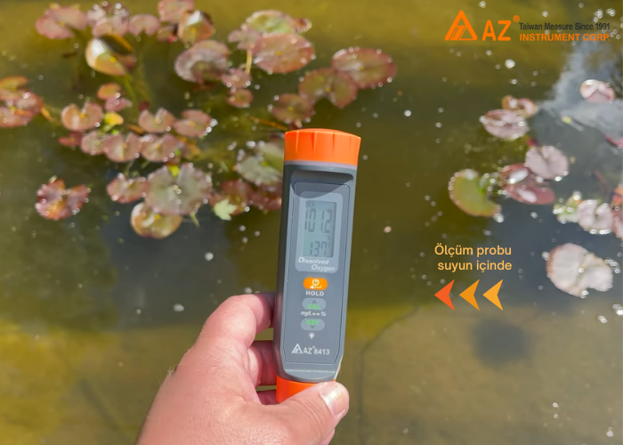 - AZ 8413 çözünmüş oksijen kalemi, su içerisindeki oksijen miktarını hem mg/L hem de yüzde (%) birimlerinde ölçebilme özelliği sayesinde, hem balık çiftliklerinde hem de çevresel su analizlerinde oldukça geniş bir kullanım alanı sunar.