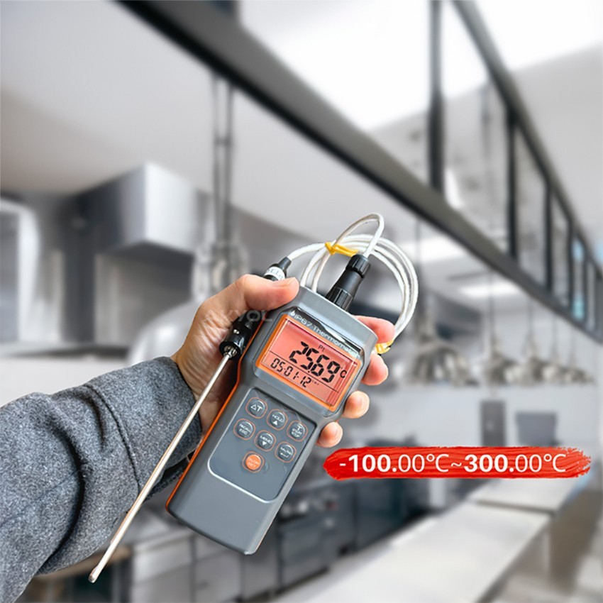 - PT100 özellikli bu termometrenin alarm özelliği bulunmaktadır. Ayarlanan sıcaklık değeri aşıldığında cihaz sesli ve yanıp sönen ikon şeklinde uyarı verir.