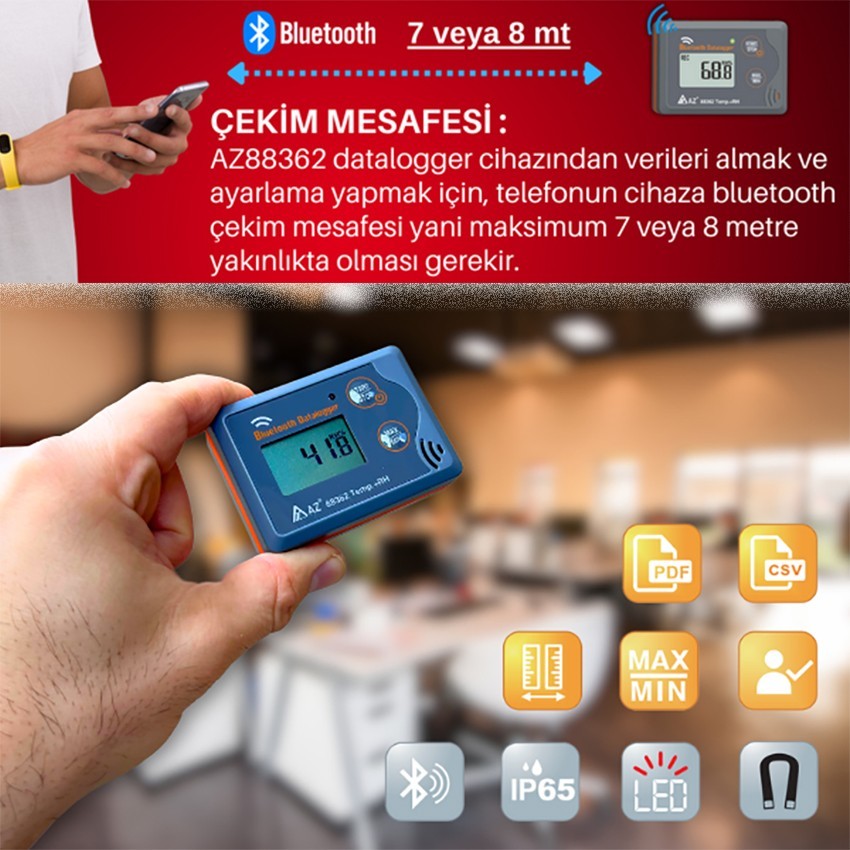 - AZ 88362 datalogger cihazı sıcaklıkta ±0.5℃, nem de ise ±3%RH gibi en hassas ölçüm hassasiyet değerlerine sahiptir.