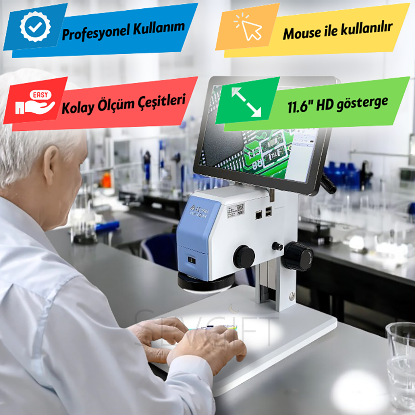 Elektronik Kart İnceleme : Baskılı devre kartlarının (PCB) lehim bağlantıları, komponentlerin dizilimi veya yüzey kusurlarını tespit etmek için kullanılır. Arızalı veya kalitesiz lehim noktalarını yakınlaşarak görmek ve ölçebilmek oldukça faydalıdır.