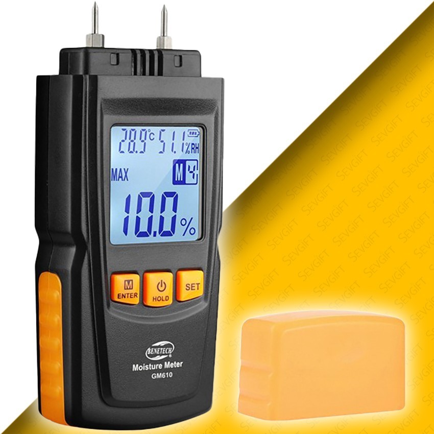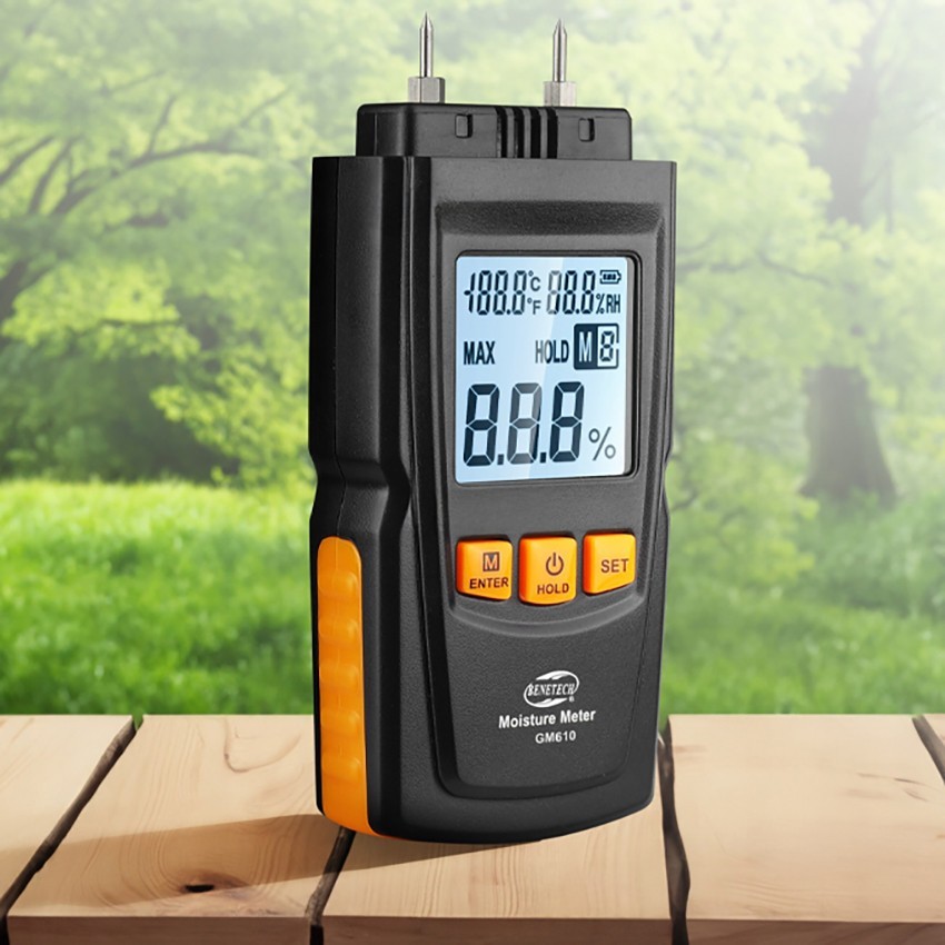 Benetech GM-610 ahşap, tahta ve ahşap benzeri nem ölçer; probları vasıtasıyla temas ettirdiğiniz ahşap yüzeylerdeki nem miktarını kolay bir şekilde ölçmeniz için kullanabileceğiniz ölçüm cihazıdır.