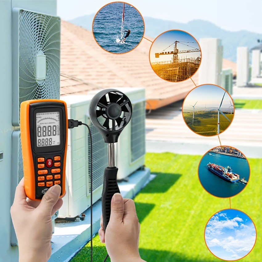 Rüzgar ölçer cihazları; havalandırma sistemleri, klima ve kanal ölçümleri, rüzgar enerjisi projeleri, tarım uygulamaları ve açık alan ölçümlerinde yaygın olarak kullanılmaktadır. Ayrıca teknik servisler ve mühendislik uygulamalarında doğru veri elde etmek için vazgeçilmezdir.