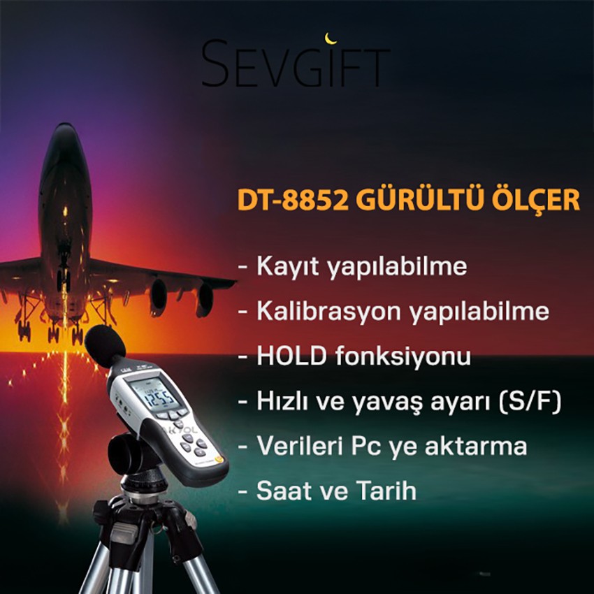 Cem DT-8852 gürültü ölçer ve desibel kayıt cihazı; çevrede oluşan ses miktarını ölçme ve kayıt altına alma işlemini yapan gürültü kayıt cihazıdır.