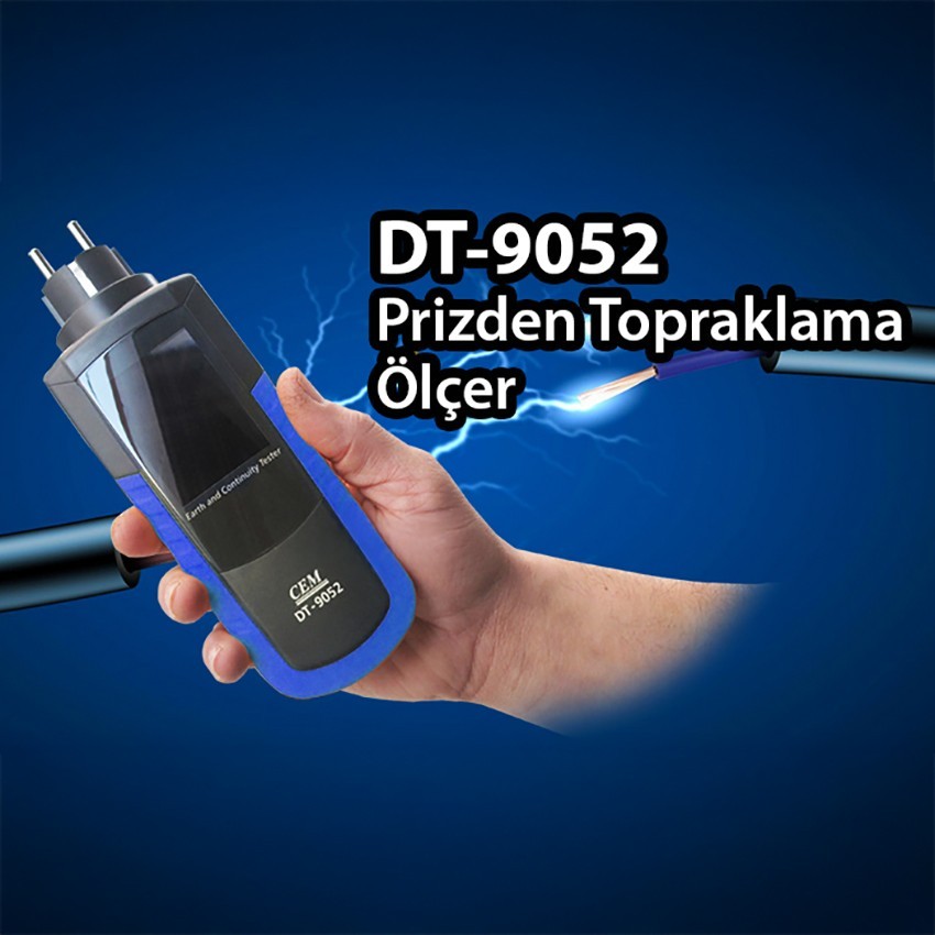 Cem DT-9052 dijital topraklama ölçer cihazı; prize takılarak, prizden topraklama olup olmadığını kontrol etmeyi sağlayan, topraklama ölçüm cihazıdır.