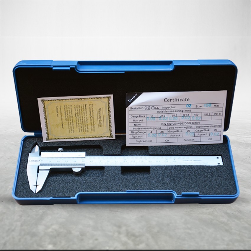 Dasqua 1120-3115-A mekanik kumpas; sertleştirilmiş paslanmaz çelikten imal edilmiş, 150 mm ölçüm aralığı ve 0.05 mm hassasiyete sahip kullanımı kolay mekanik bir kumpastır.