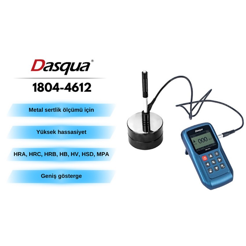 Dasqua 1804-4612 metal sertlik ölçer; çoğu metale uygun geniş ölçüm aralığına sahip, gelişmiş bir leeb tipi taşınabilir sertlik test cihazıdır.