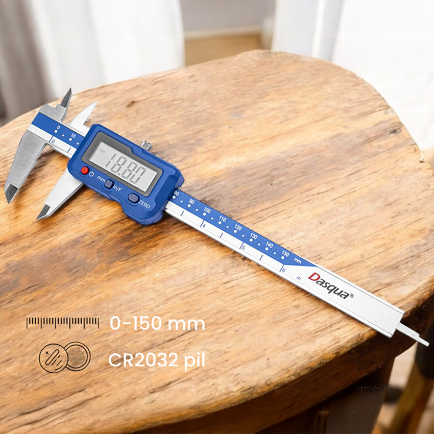 Dasqua’nın IP67 su, toz ve yağ geçirmez 3004-0005 kodlu dijital kumpası, 0-150 mm ölçüm aralığı ve ±0.01mm hassasiyetle birçok alanda kusursuz kalınlık ölçüm yapmanızı sağlar. Dasqua 3004-0005 dijital saatli bu kumpas; hem iç hem de dış ölçümlerde maksimum verim sunarken, 1000mAh şarj edilebilir lityum pil ve sağlam tasarımıyla uzun yıllar güvenilir bir iş ortağı olur.