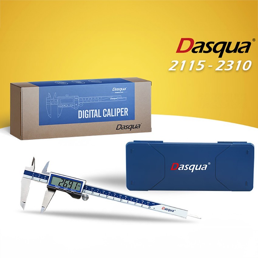 Dasqua 2115-2310 elektronik kumpas; 200 mm yani 20 cm uzunluğunda ve 0.01 mm hassasiyet ile kalınlık ölçümü yapabilen, diğer kumpaslardan farklı olarak göstergenin olduğu bölümde metal bir kasaya sahip olan kalınlık ölçüm cihazıdır.