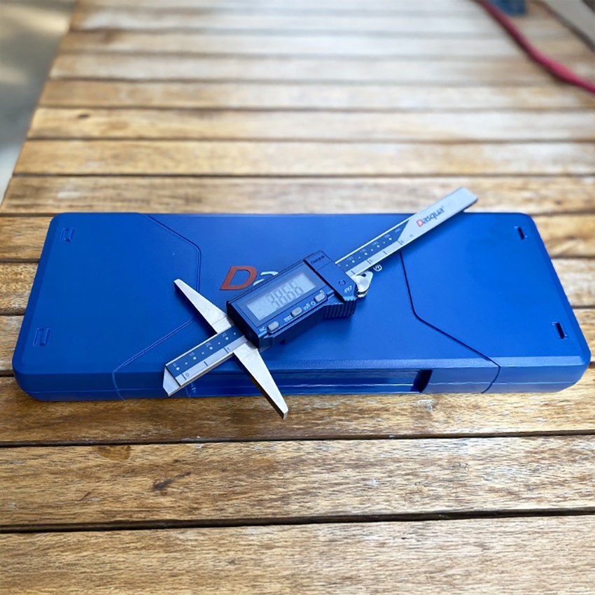 Dasqua 2115-2310 elektronik kumpas; 200 mm yani 20 cm uzunluğunda ve 0.01 mm hassasiyet ile kalınlık ölçümü yapabilen, diğer kumpaslardan farklı olarak göstergenin olduğu bölümde metal bir kasaya sahip olan kalınlık ölçüm cihazıdır.