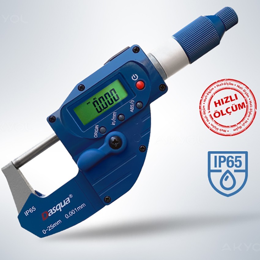 Dasqua 4410-1105-A Dijital mikrometre; hassas dijital kalınlık ölçüm cihazıdır. 0.001 mm hassasiyetiyle 0 ile 25 mm arasında sağlıklı bir şekilde kalınlık ölçümü yapabilirsiniz.