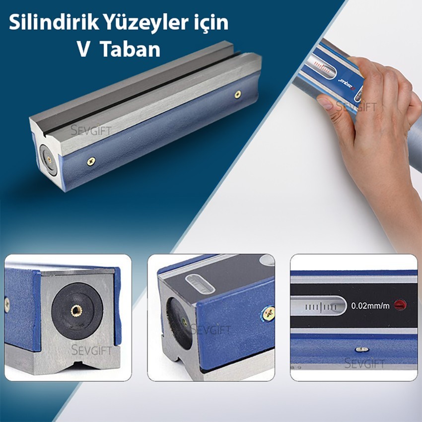 - Silindirik parçaların eğim kontrolünde kolaylıkla kullanılabilmesi için V tabanı bulunmaktadır.