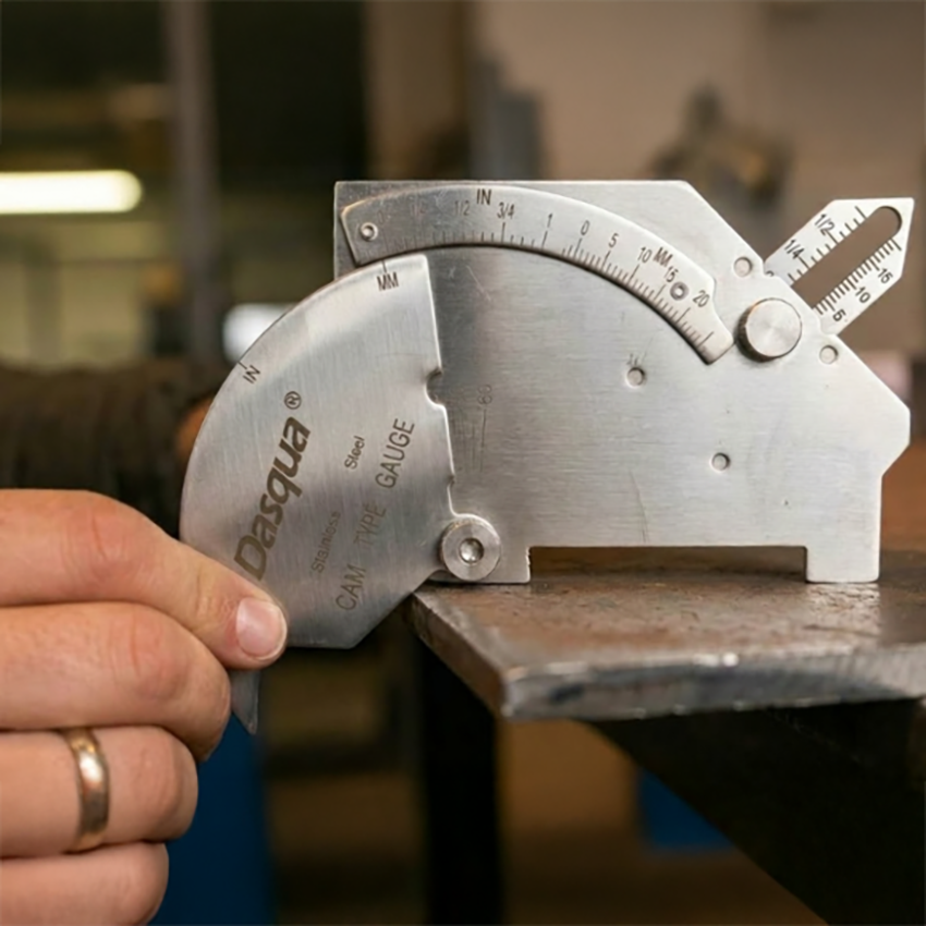 Dasqua 8511-0030 kaynak kumpası; kaynak takviyesi yüksekliği, köşe kaynak ölçüleri, hizasızlık, yanma oluğu derinliği ve kaynak ağzı hazırlık açısı gibi temel kaynak