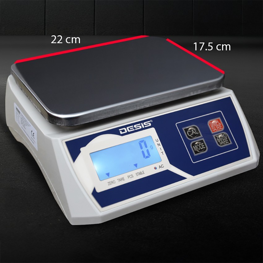 Desis H7W-30 dijital terazi; 30 kilogram tartım kapasitesine ve 1 gram hassasiyete sahip, arka aydınlatma ışığı ile karanlık ortamlarda ölçüm olanağı sağlayan kullanımı basit olan bir tartım cihazıdır.