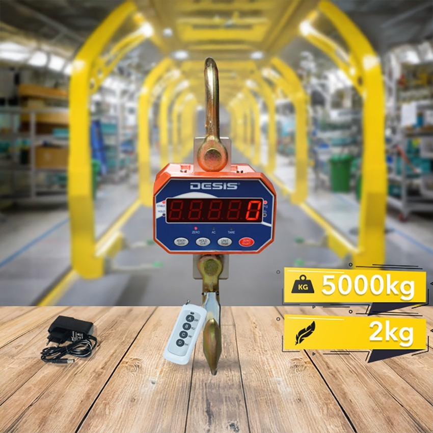Desis OCS-A vinç baskülü maksimum 5 ton' a kadar tartım yapabilen ve 2 kilogram hassasiyetli uzaktan kumandaya sahip bir tartım cihazıdır.