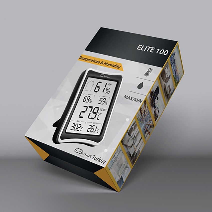 Elite 100 ölçüm cihazı; herhangi kapalı bir ortamda bulunan sıcaklık ve nem değerini ölçebilen, aynı zamanda eş zamanlı