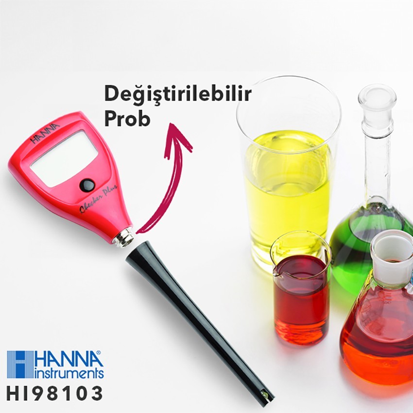 - Hanna HI 98103 pH metre cihazının en büyük özelliği 103 mm lik ince probu sayesinde deney test tüplerine, şişelere ve küçük ağızlı diğer kaplara kolayca sığmaktadır.