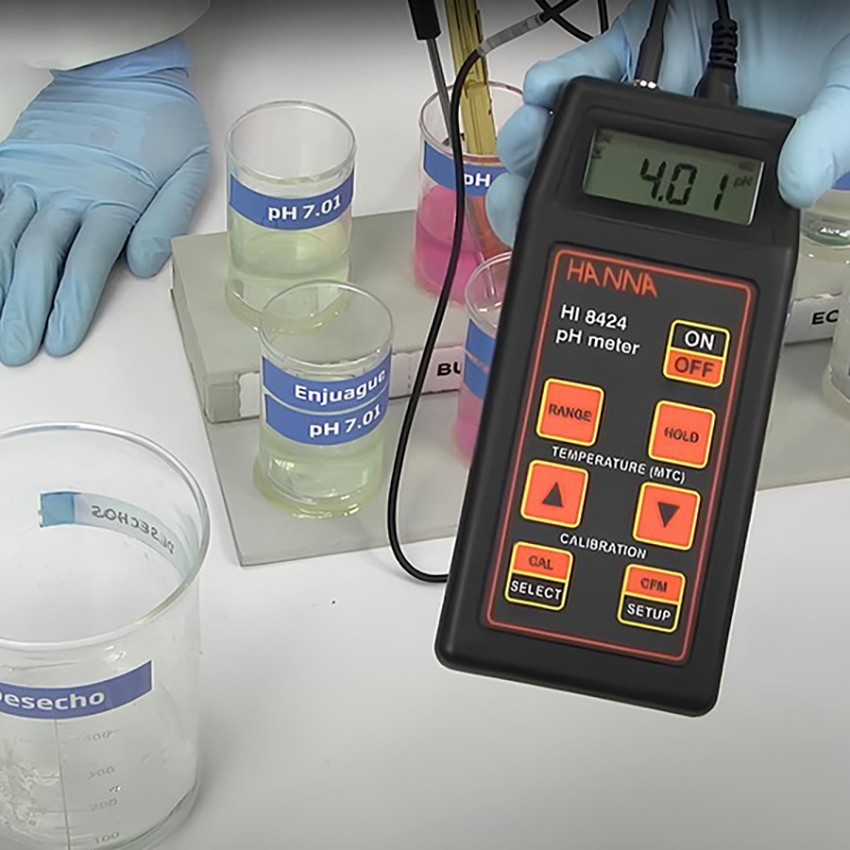 Hanna HI8424 taşınabilir ve kullanımı kolay bir el tipi pH, sıcaklık ve mV (ORP) ölçüm cihazıdır. Harici olarak bağlanan HI1230B probu ile pH, HI7662 probu ile sıcaklık, opsiyonel olarak satın alınabilecek HI3131B probu ile ORP ölçümleri yapılabilir.