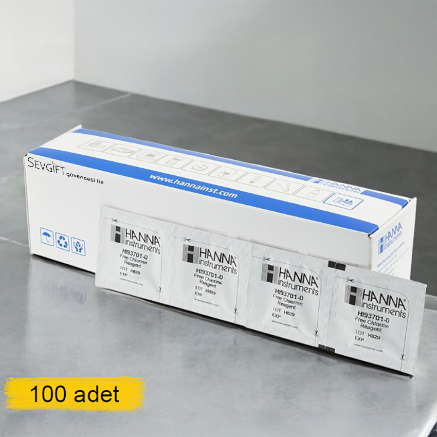 - Hanna HI93701-01 içerisindeki paket tozlar; Hanna HI701ST cihazını satın aldığınızda yanında 5 adet olarak gelir. Fakat bu 5 adet sürekli ölçüm yapacağınız zaman kısa sürede tükenir. Sürekli ölçüm yapılacaksa HI93701-01 serbest klor reaktif seti alınması gerekmektedir.