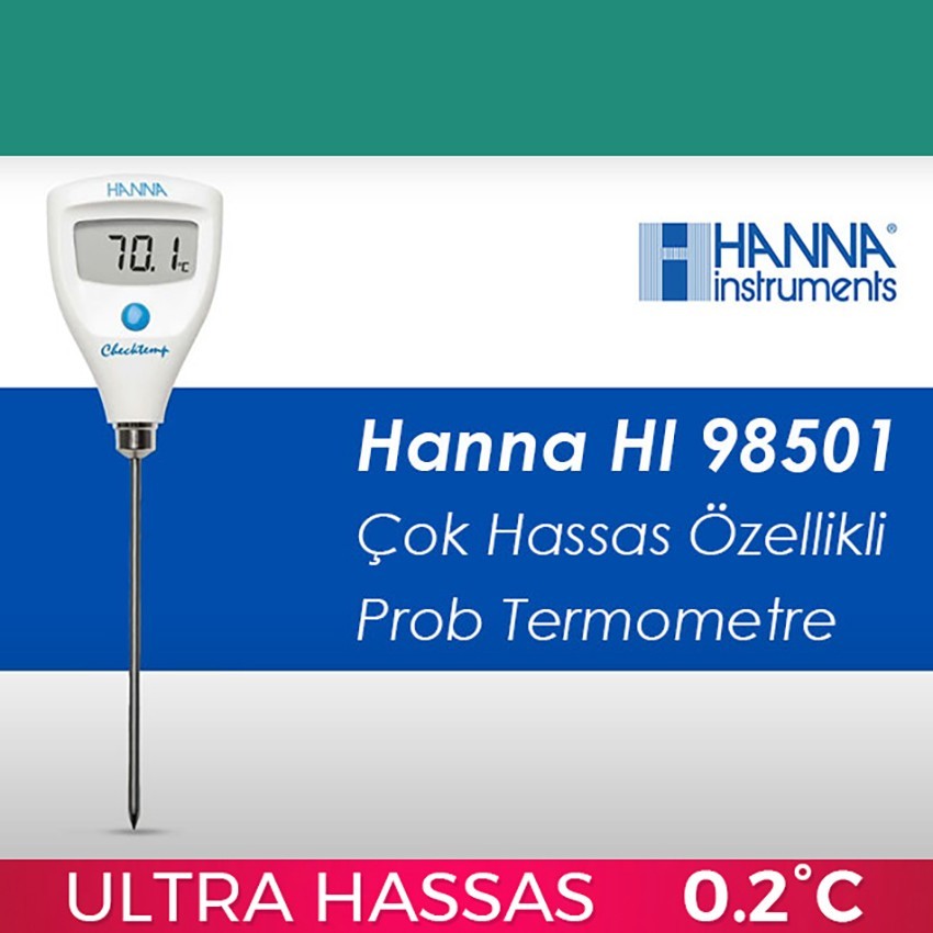 Hanna HI98501 problu termometre, yüksek hassasiyete sahip 10.5 cm uzunluğunda metal prob ile 0.2ºC hassasiyet sunan bir çubuk termometredir. Yarı katı ürünlerde ve sıvılarda hızlı ve doğru sıcaklık ölçümü yapma yeteneği ile öne çıkar.