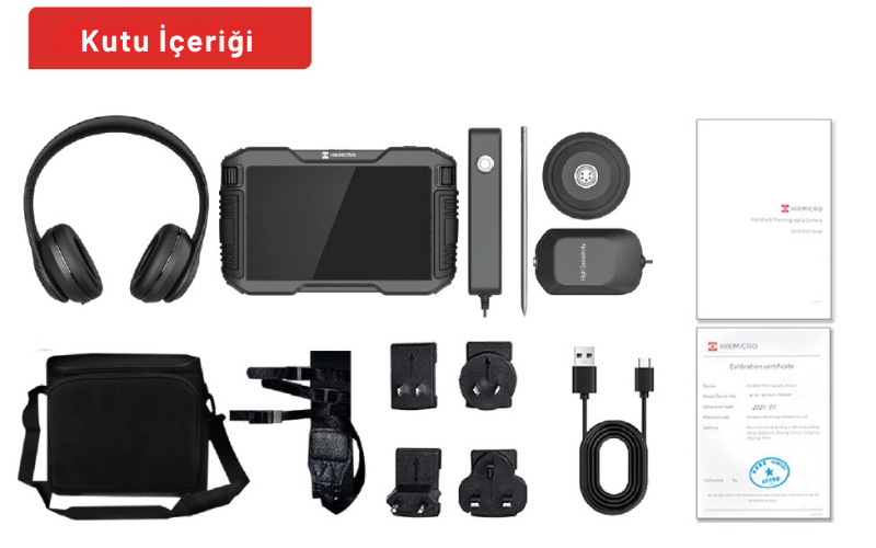 - Ürün kutu içeriği ; Ana Ünite, El Tipi Sensör, Alıcı (Pick-up) Sensör, Tutma Kolu (Handle Grip), Kulaklık, Pil Şarj Cihazı için Güç Adaptörü, Uluslararası Priz Uçları (US / EU / UK / AU) – 4 Adet, USB 2.0 A – USB Type-C Bağlantı Kablosu, Taşıma Çantası (Pouch), Hızlı Başlangıç Kılavuzu şeklindedir.