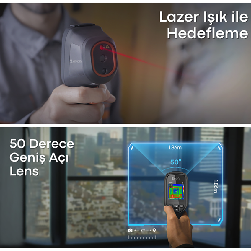 50° geniş açı lens ile donatılan Hikmicro Eco-V, geniş yüzeylerin hızlı ve verimli şekilde taranmasına imkân tanır.