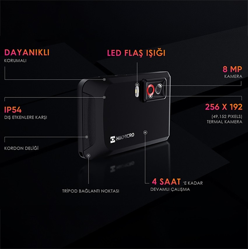 - HIKMICRO markasının Pocket2 termal kamera cihazı; tam bir teknik ekibi donatmak için ideal olan termal görüntüleme kamerasıdır. Küçük ve kullanışlıdır ancak aynı zamanda şantiyelerdeki zorlu çalışma koşulları için sağlam bir tasarıma sahiptir.