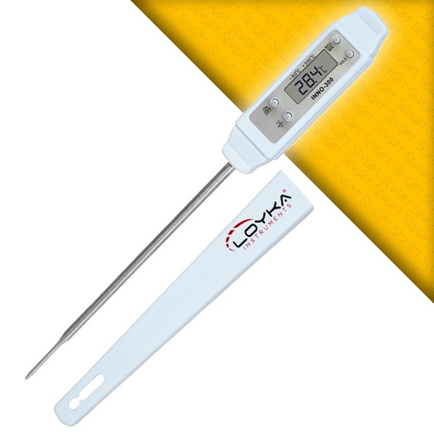 Inno-300 saplama problu termometre; 125 mm paslanmaz proba sahip, hassas ve hızlı ölçüm yapabilen, dijital göstergeli saplamalı gıda termometresidir.