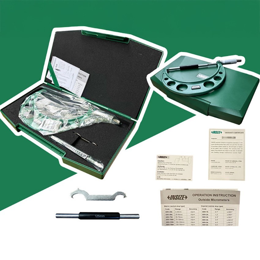 - Ürünün kutu içeriği; 3203-150 mikrometre, anahtar, kalibrasyon mili, plastik taşıma kutusu, bilgilendirme kağıdı ve test sertifikasından oluşmaktadır.