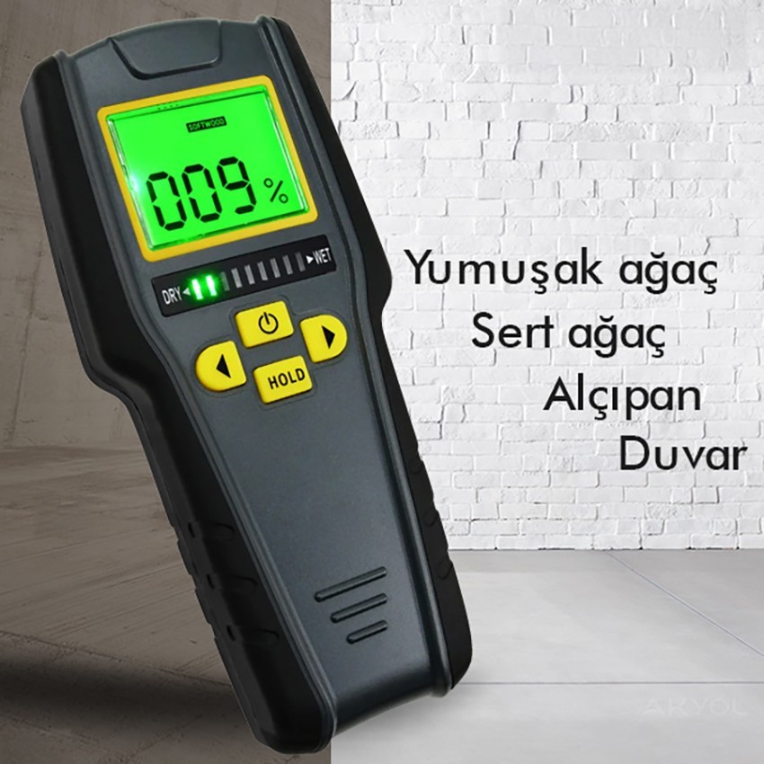 - 4 farklı malzeme türünün nemini ölçebilmektedir. Bunlar; alçıpan, duvar-yapımalzemeleri, sert ağaç ve yumuşak ağaçtır.