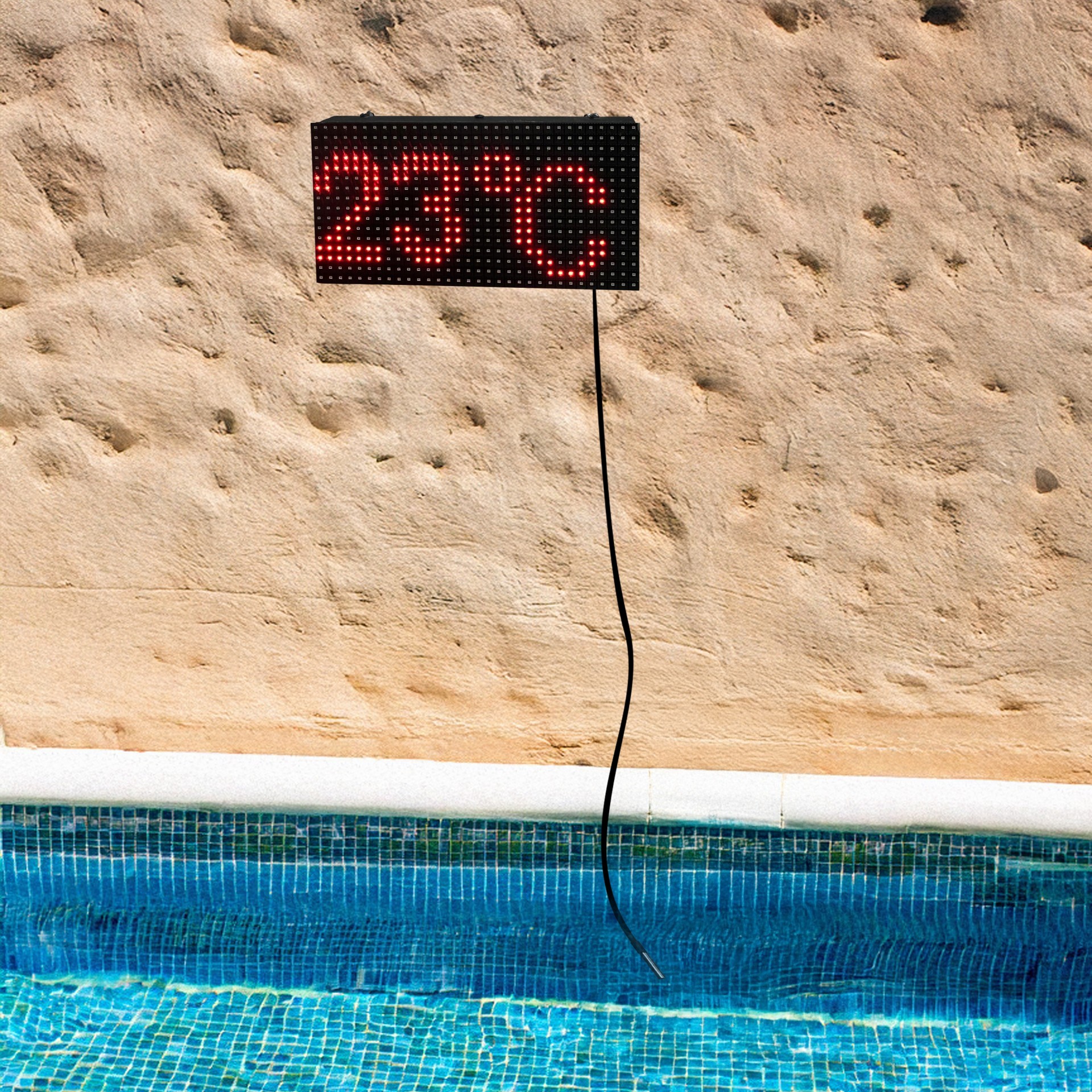 LED ekranlı kablolu havuz termometresi ile su sıcaklığını anlık olarak kolayca takip edin! 16x32 cm boyutlarındaki bu şık ve dayanıklı termometre, havuz duvarına kolayca monte edilebilir.