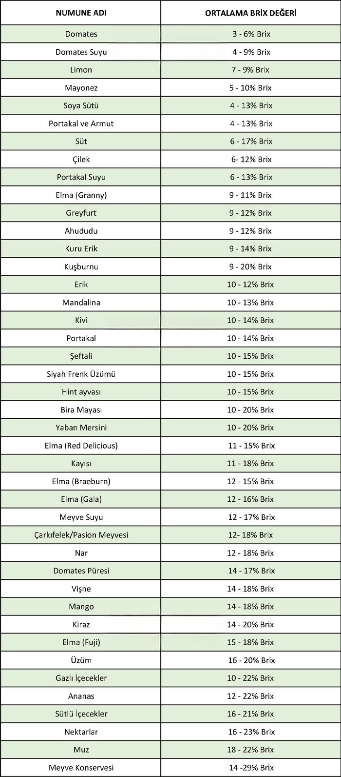Not: Yukarıda yer alan numunelerin ölçüm sonuçları örnektir. Şekerlilik oranına göre numunelerde ölçüm sonuçları farklı çıkabilmektedir.