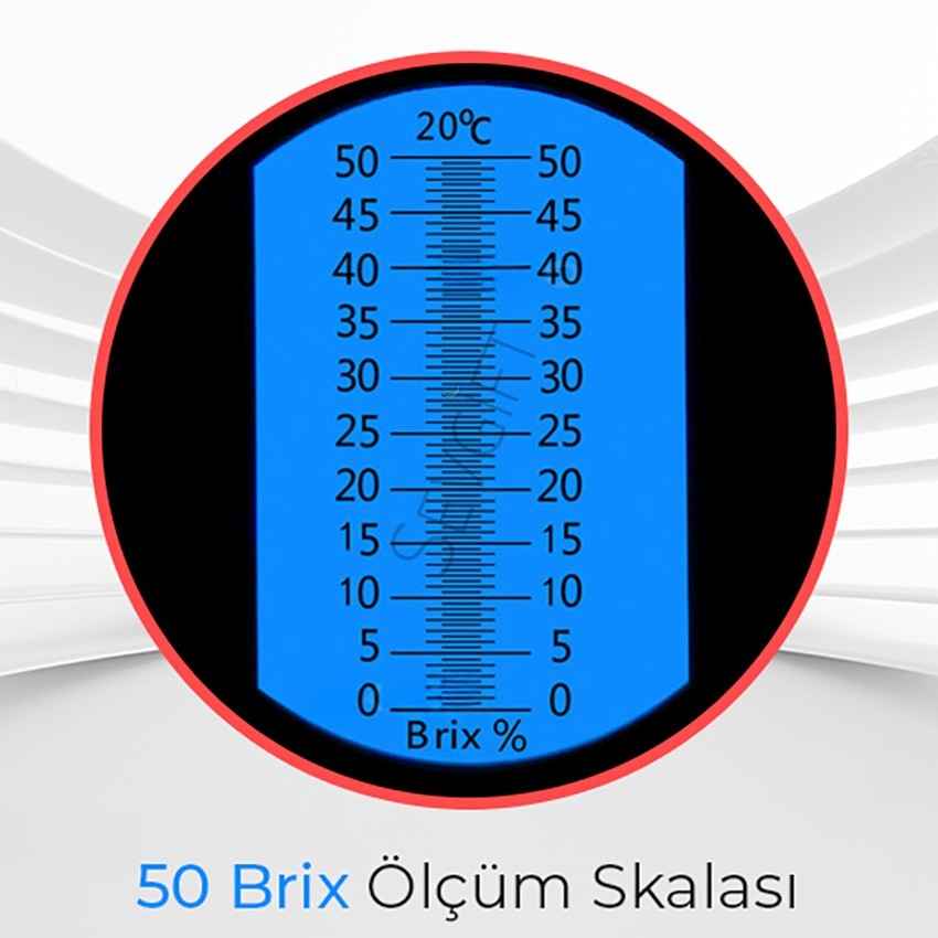 - 0-50 brix refraktometresi; %0 ile %50 arası numunelerin brix ölçümünü yapabilen dürbün tip ölçüm cihazıdır.