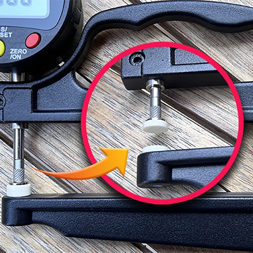 - 5331-10 kalınlık komparatörü cihazımız seramik düz ölçüm ucuna sahiptir. Bu seramik ölçüm tabanı çapı 9,85 mm'dir.