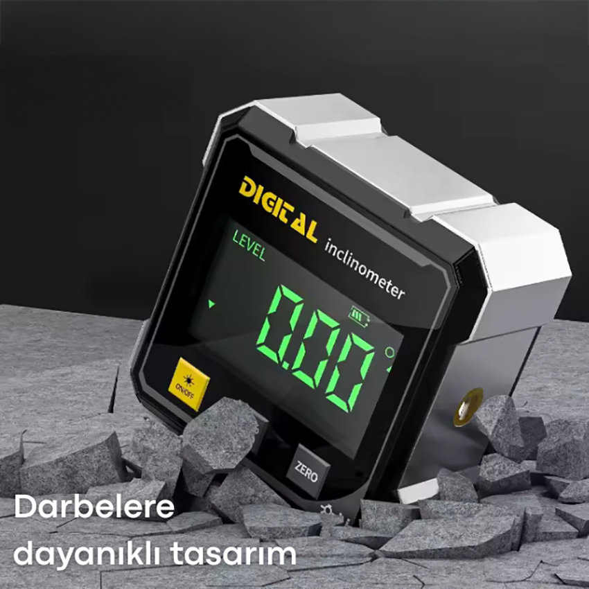 - Dijital eğim ölçer, hassas açı ve seviye ölçümü yapabilen kompakt bir cihazdır; dijital göstergesi sayesinde eğim değerlerini net ve okunaklı biçimde ekranda sunar.