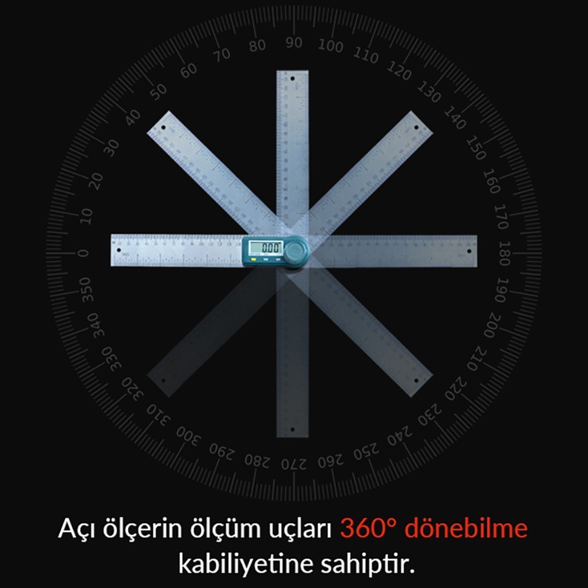 - 5522-300 20 cm'lik dijital açı ölçer ile yapılan ölçümler gayet kolay ve hassas bir şekilde yapılabilmektedir.