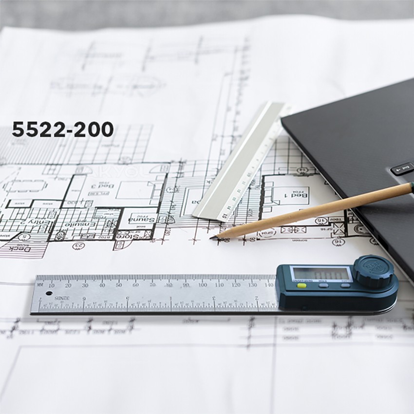 - 5522-200 açı ölçer cihazı 20 cm'lik paslanmaz çelik skalaya sahiptir.