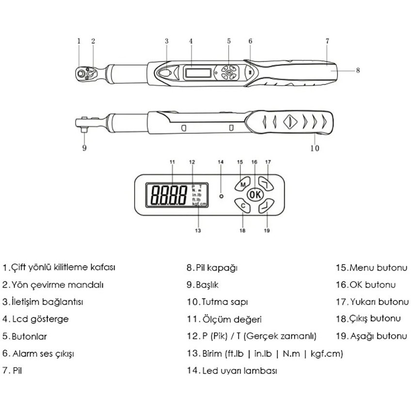 AWJ4-0340 torkmetre ürünü; akıllıca tasarlanmış bir torkmetre cihazı olup, 340Nm basınca kadar askı işleri ve cıvataları sıkma/çözme ve sıkılık kontrolü için harika bir ölçüm cihazıdır. En yüksek değeri tutma (P) ve gerçek zamanlı değeri gösterme (T) özelliğine sahiptir.