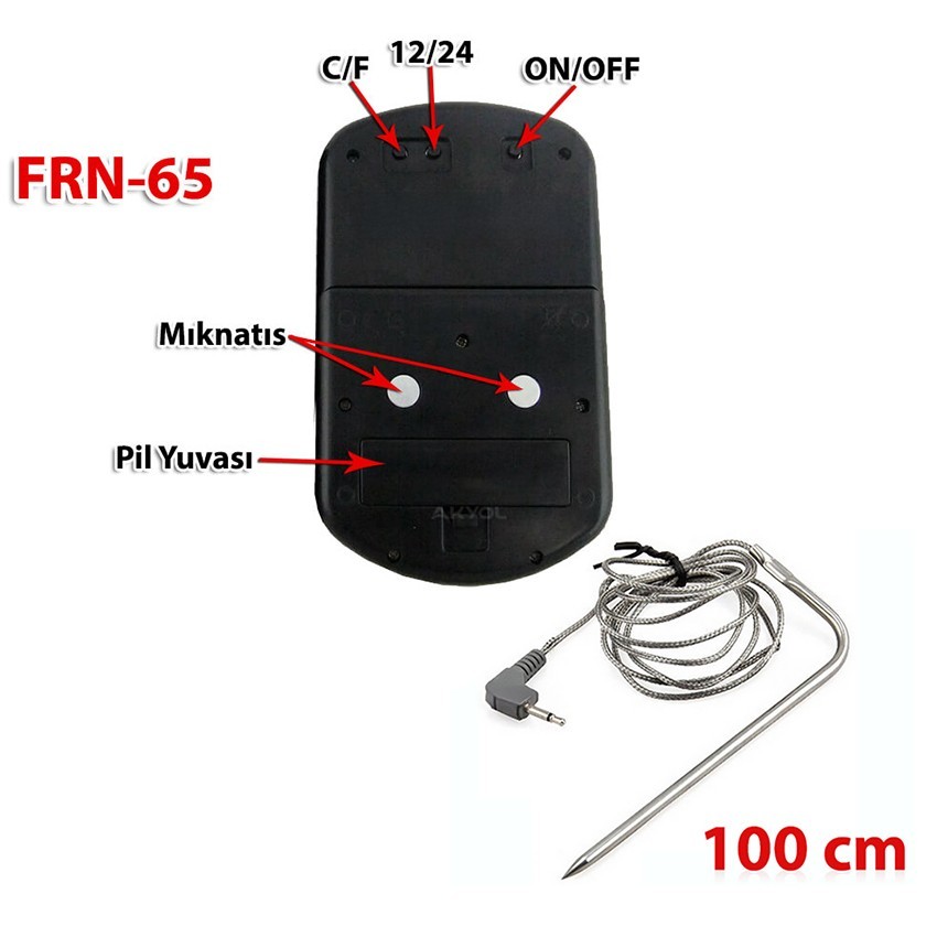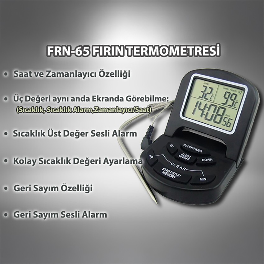 sensörü ile maksimum 300°C sıcaklığa kadar ölçüm yapabilen dijital fırın termometresidir.