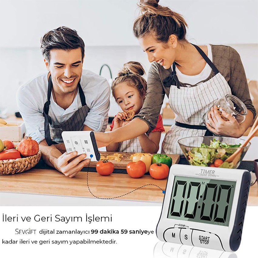 - Sevgift GE100 dijital zamanlayıcı 99 dakika 59 saniyeye kadar ileri ve geri sayabilme özelliğine sahip bir cihazdır.