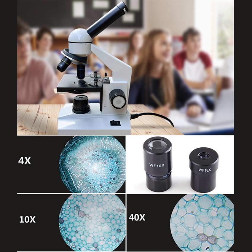 - Mikroskop başlığına takılan WF10X ve WF16X mercek ile 400x ve 640x büyütme oranları arasında değişen değerler ile inceleme yapabilirsiniz.(WF16X ve WF10X oküler başlıklar kutu içerisinden çıkmaktadır.)