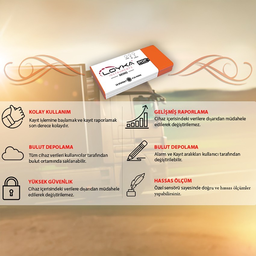 - Loyka Mono datalogger cihazı; sebze , meyve, deniz ürünleri, et ve ilaç gibi birçok alanda sıcaklığa duyarlı ürünlerin dağıtımı esnasında sıcaklık ölçümünü kaydetmek için özel olarak üretilmiştir.
