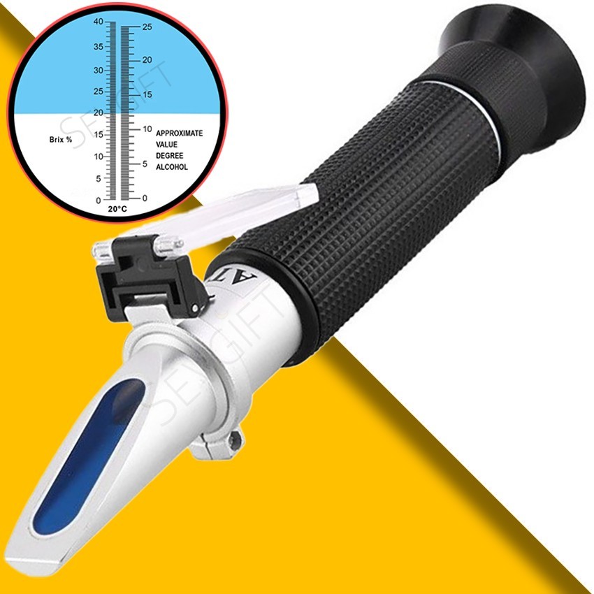 Şarap Refraktometresi, %0 ile %40 aralığında brix ölçümü ve %0 ile %25 aralığında potansiyel alkol derecesi ölçümü yapabilen bir cihazdır. Üzümlerin şeker içeriğini analiz ederek, üretilen şarabın alkol derecesini tahmin etme imkanı sunar. Bu cihaz, hem profesyonel şarap üreticileri hem de hobi olarak şarap yapanlar için mükemmel bir yardımcıdır.