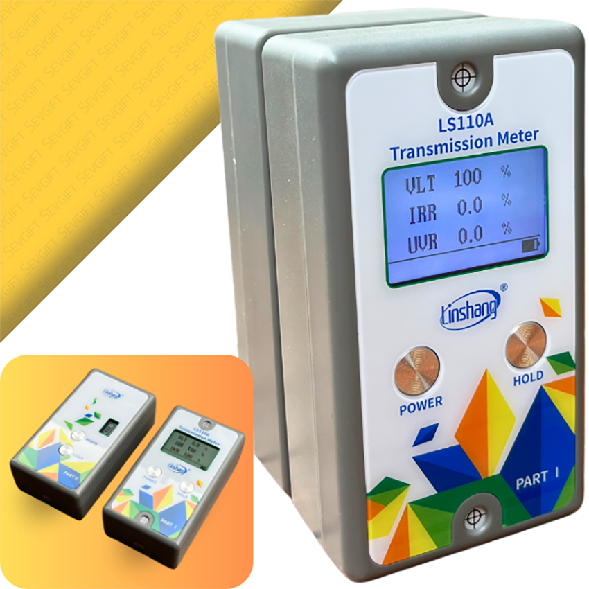 Linshang LS110A ölçüm cihazı; cam veya cam film yüzeylerinin ışık geçirgenliği ve ışık engelleme kabiliyetlerini aynı anda ölçüp gösteren bir ışık geçirgenlik test cihazıdır. Bu cihaz ile cam, pencere filmi ya da güneş koruyucu filmi gibi malzemelerin ne kadar ultraviyole ışını engellediğini (UVR), ne kadar kızılötesi ışını engellediğini (IRR) ve ne kadar görünür ışık geçirdiğini (VLT) tek seferde ölçebiliyorsunuz.