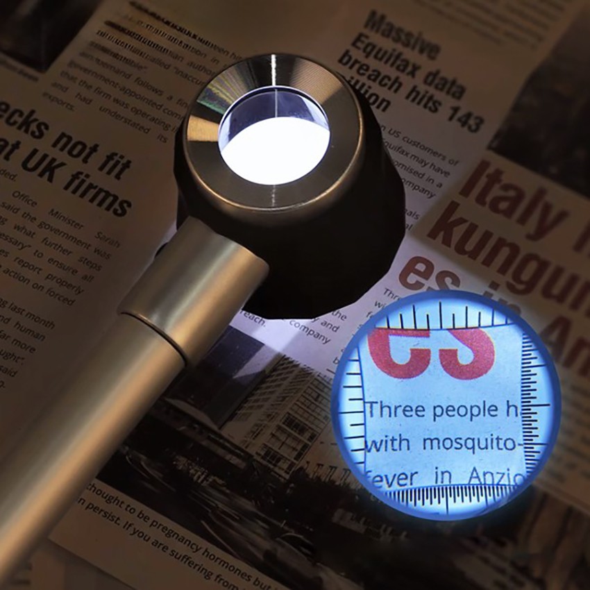 ışıklı el tipi büyüteç; 15x yakınlaştırma yapılabilme özelliğine sahip, 5x ve 10x merceğin birleşiminden oluşan bir büyüteç çeşididir. Büyütecin arka kısmında bulunan 6 adet led ışığı sayesinde karanlık ortamlarda rahat bir şekilde büyütme işlemi yapabilirsiniz. Ayrıca el tipi büyüteçte 2 adet UV led (Ultraviyole) bulunmaktadır.